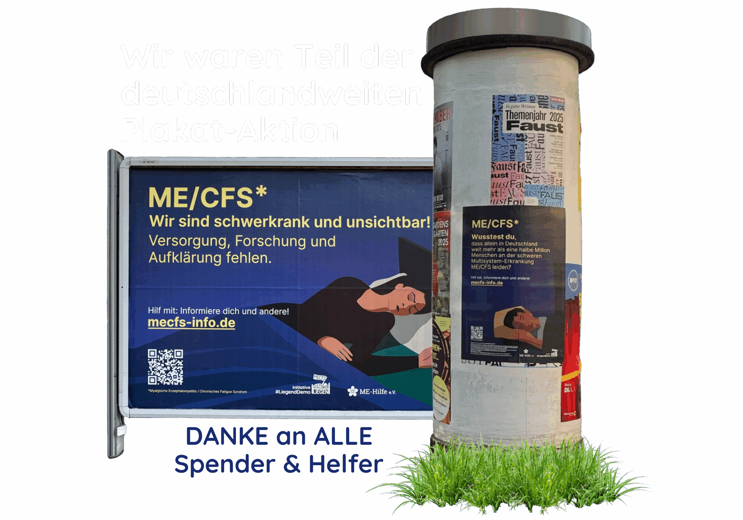 Im Frühjahr 2025 haben wir ein Zeichen gesetzt: Über 15.000 Plakate wurden deutschlandweit aufgehängt und verteilt, um auf die schwere, neuroimmunologische Multisystemerkrankung ME aufmerksam zu machen. Was eigentlich Aufgabe der Bundesregierung wäre – eine umfassende Aufklärungskampagne – haben Betroffene und Angehörige selbst übernommen. Bis heute gibt es keine staatliche Informationsinitiative, obwohl der Handlungsbedarf seit Jahren bekannt ist.